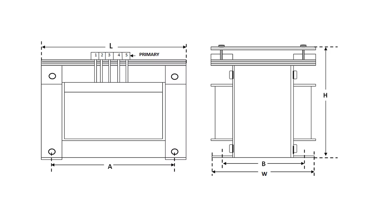 Sr. No | Capacity (VA) | L (mm) | W (mm) | H (mm) | A (mm) | B (mm) | Weight (Kg) |